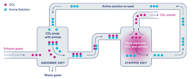 Figure 2: A carbon dioxide capture process using amine absorption technology. Source: http://www.catf.us